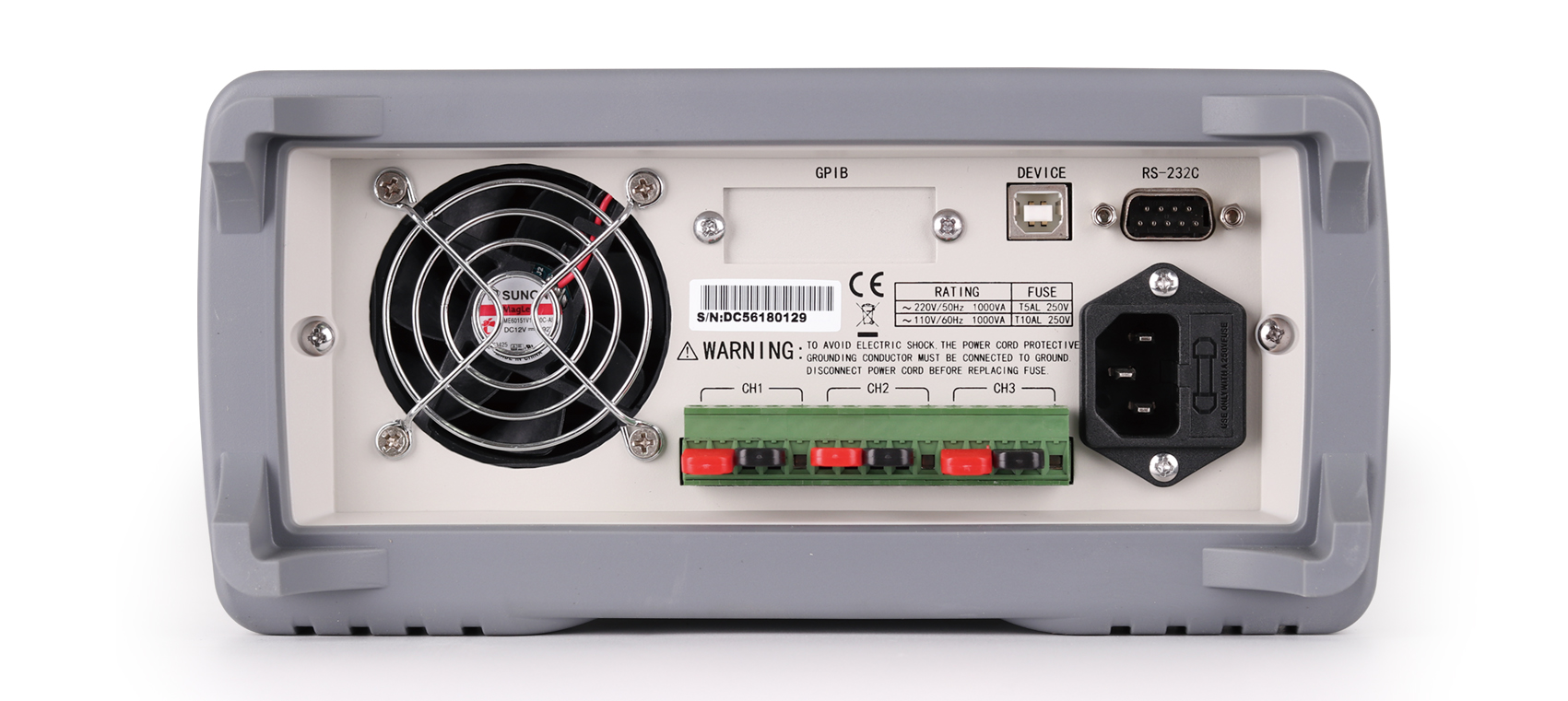 TH6400系列电源前后面板都配备有输出端,具有1/2标准机箱尺寸,配备齐全的通讯接口,支持SCPI和MODBUS通讯协议,使其可以方便的集成于自动化系统上。